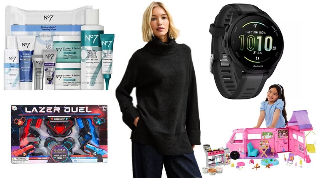 Some enticing Black Friday deals include discounts on products like Schuh Wide-Fit Amia Chelsea Boots, New Look Longline Roll Neck Jumper, Nike Club Men’s Cargo Trousers, Ring Battery Video Doorbell, Sony Bravia 8A 55” Oled 4k HDR AI Smart TV K55XR8AB, Garmin Forerunner 165 GPS Running Smart Watch, Boots No7 The Ultimate Skincare Collection Gift Set, Marc Jacobs Daisy Ever So Fresh Eau de Parfum, MAC Connect In Colour Eye Shadow Palette, Barbie Playset Dream Camper, Lazer Duel Light Up Chest Plates and Blasters, LEGO Bluey Playground Fun With Bluey And Chloe Construction Set, Scoville Black 9L Dual Basket Air Fryer, Shark PowerPro Pet Cordless Stick Vacuum with Anti Hair Wrap & Floor Detect IZ380UKFDB, and Ninja Foodi Blender and Soup Maker HB150UKSTGD.